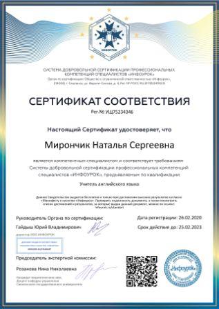 Сайт учителя английского языка Мирончик Натальи Сергеевны